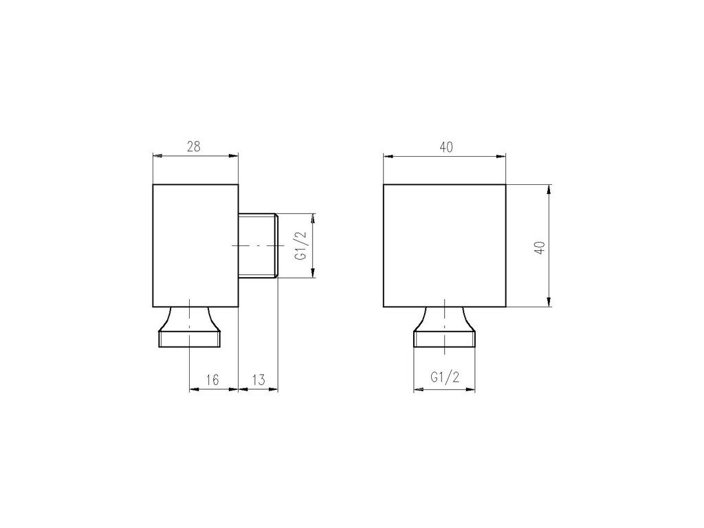 Mezikus na připojení hadice k vanové/sprchové vestavěné baterii - čtverec.