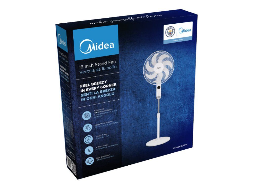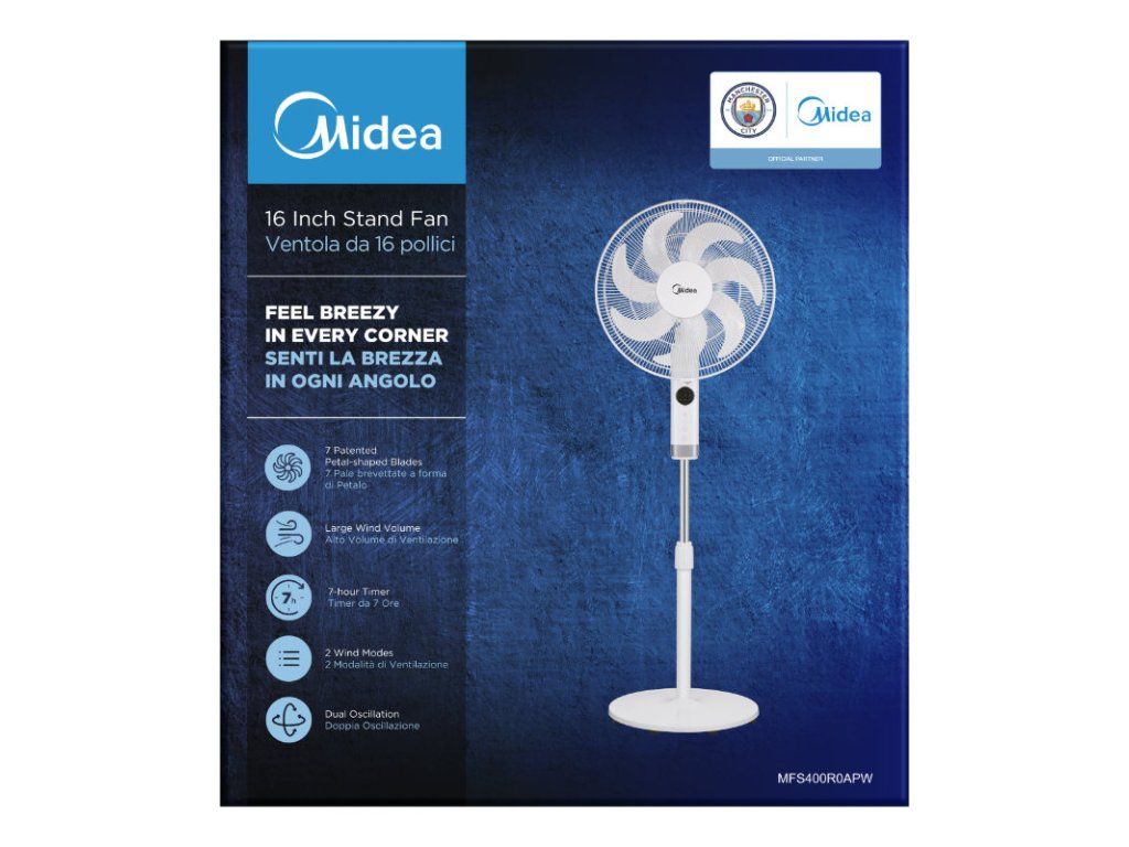 MIDEA Stojanový ventilátor, 7 lopatek s dálkovým ovladačem, bílý, M-FS40-23MR