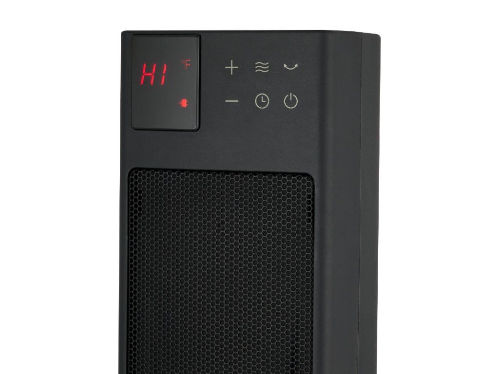 | • výkon: 1200/2000 W • digitální termostat • dálkové ovládání • LED displej • 3 režimy: topení, ventilátor, ECO • časovač 24 hodin • ochrana proti přehřátí a převrácení • provozní plocha: 10 m2 • 765 x 200 x 196 mm |