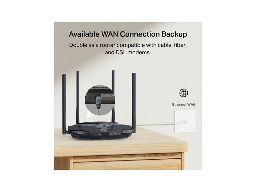 Díky čtyřem výkonným anténám a podpoře technologie EasyMesh router propojíte s dalšími přístupovými body a vytvoříte jednolitou Wi-Fi síť bez mrtvých zón. Zařízení navíc podporuje množství funkcí pro správu dat a provozu, od statistiky spotřeby dat až po rodičovské zámky, bezpečnostní protokoly, QoS a správu přes web nebo mobilní aplikaci.