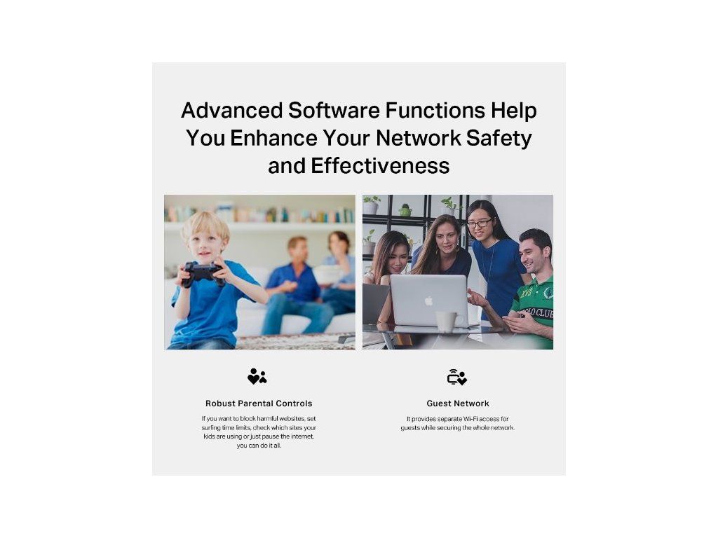Rodičovská kontrola zajistí osobní a odpovídající přístup k internetu pro každého člena rodiny. Úrovně filtrů a časové limity pomohou s kontrolou těch nejmenších, kdy můžete blokovat určité URL adresy nebo naplánovat časy, kdy se zařízení pro děti může připojit k internetu.