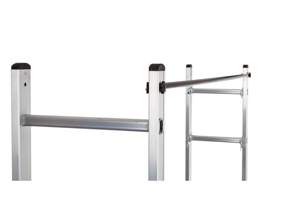 Multifunkční lešení G21 Handrail má různé kombinace využití. Můžete ho použít jako samostatný žebřík o různých délkách, štafle a lešení (o velikosti plošiny 159 x 40 cm), které má 2 stabilní opěrné nohy.