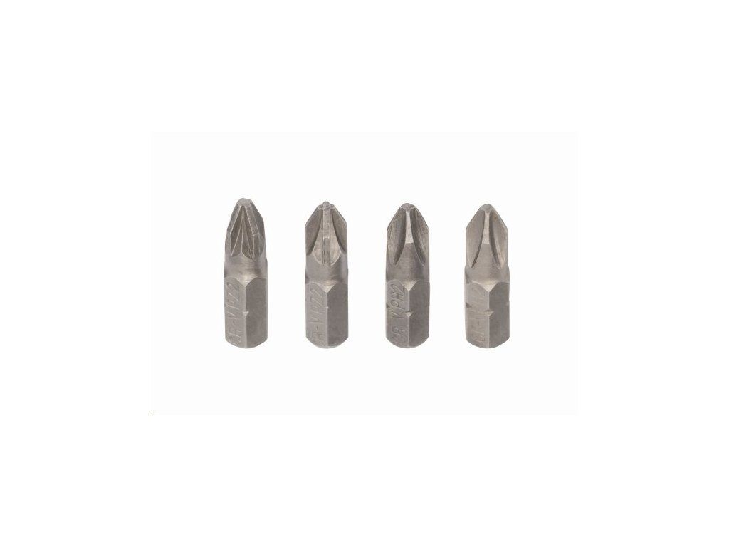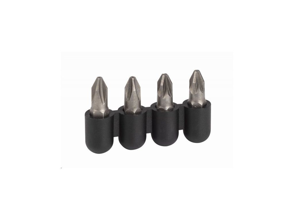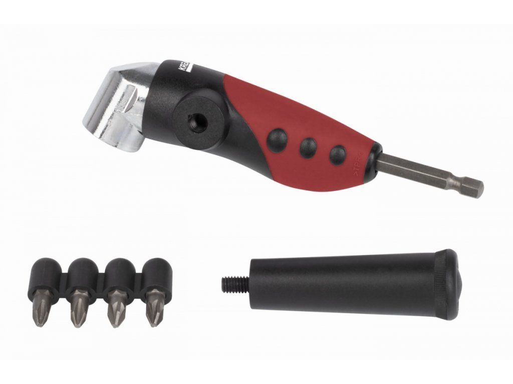 Úhlový držák bitů KRT063700 je dodáván se dvěma bity PH2 a dvěma bity PZ2 z CRV oceli a adaptérem 1". Součástí balení je i přídavné držadlo pro snadnější práci.