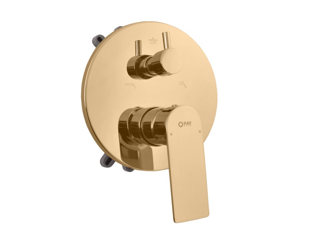 NIL - Vanová/Sprchová baterie podomítková 3-cestná s tělesem a s boxem, Zlatá - lesklá NL187BOXZ, RAV Slezák