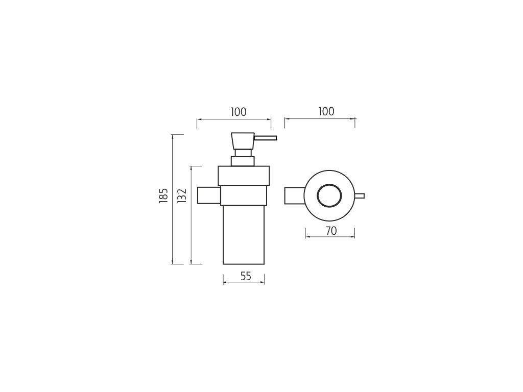 Nástěnný dávkovač tekutého mýdla z matného skla. Pumpička plast / chrom. Objem nádobky 250 ml.