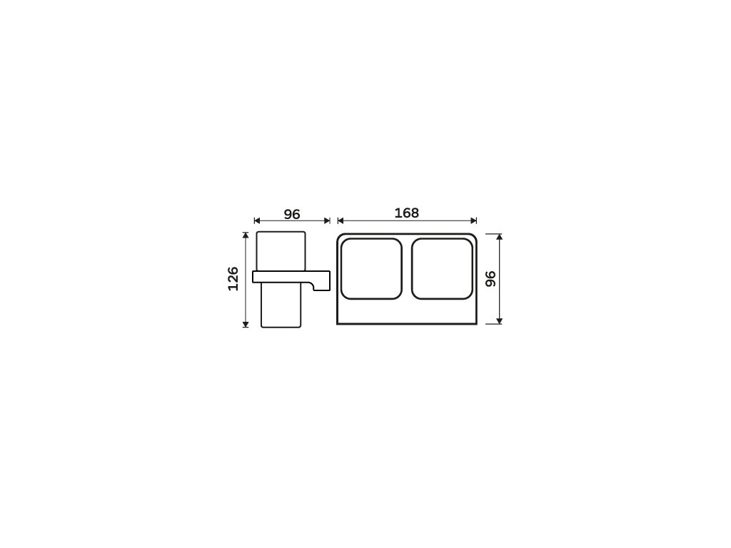 Dvojitý držák na kartáčky. Pohárky z matného skla.