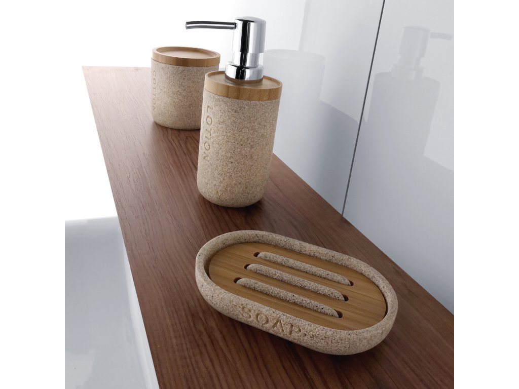 Mýdlenka na umyvadlo písková / bambusové dřevo je skvělým doplňkem do koupelny. KORA v písčité béžové barvě vás zahřeje na první pohled. KORA je návrat k přírodě. Do popředí se derou přírodní materiály i odstíny. Dřevo, bambus, kameny a písek ve své naturální podobě vnášejí do prostoru koupelny uklidňující atmosféru a tolik potřebný pocit tepla a pohody. Mýdlenka bude koupelně slušet mnohem více, pokud zvolíte i další doplňky série Kora z nabídky koupelnových a WC doplňků NIMCO. Uvedený výrobek se nemontuje na zeď. Všeobecný návod údržby volně stojících doplňků Povrch polyresinových a plastových POM materiálů vyžaduje pravidelné čištění. Volně stojící doplňky lze čistit mýdlovou vodou. Po vyčištění vytřete hadříkem do sucha. Nenechte doplněk stát na umyvadle ve vodě! Působením vody, zbytků mýdla, pasty apod. může dojít k poškození povrchu. Totéž platí i pro bambusové doplňky, které jsou součástí některých volně stojících doplňků. Na odstranění silnějšího znečištění použijte ocet. Roztok by měl působit cca 15 – 20 minut. Po aplikaci je nutné výrobek dobře opláchnout čistou vodou. V žádném případě nepoužívejte k čištění myčku na nádobí. Pro údržbu kovového, skleněného a keramického příslušenství stačí používat hadříky, které lze objednat pod následujícími artiklovými čísly: RP 1005, RP 1005 SET, RP 1006 a RP 1006 SET. Tyto hadříky jsou skvělými pomocníky v domácnosti. Jsou ideální pro čištění různých povrchů a díky jejich vysoké kvalitě zajistí dokonalý výsledek při každém použití, a to bez použití chemických prostředků. Poškození může nastat v těchto případech : a) použití bělících nebo desinfekčních prostředků především pokud obsahují sloučeniny chloru (chlornany, chlorečnany, apod.). Tyto prostředky nemusí být používány přímo na výrobky. Výrobek může být poškozen i v nevětratelné místnosti, kde se sráží voda s příměsí chloru (bazény, vířivky apod). b) vlivem působení vodního kamene. Tlusté vrstvy vodního kamene, které jsou i vlhké, výrazně zvyšují riziko poškození c) použití alkalických nebo kyselých silně koncentrovaných čisticích prostředků a prostředků obsahující silná oxidační činidla (protiplísňové a bělící prostředky). Tyto prostředky nemusí být používány přímo na výrobky. V omezeně provětrávaných prostorech je vhodné se vyhnout použití těchto prostředků – odpařované chlorované sloučeniny mohou na povrchu kondenzovat a tím ho poškodit. Pokud je nutné tyto čisticí nebo desinfekční prostředky použít, je nutné zajistit dobré větrání prostor a čištěné povrchy dobře a rychle opláchnout! d) použítí prostředků stavební chemie určených pro čištění např. dlažeb od stavebních hmot - jsou velmi korozně agresivní! e) použití tekutých nebo pastovitých písků, které obsahují abrasivní částice! Je třeba vyhnout se jakýmkoli drsným čisticím prostředkům, protože ty mohou být příčinou škrábanců. V žádném případě se nesmí používat ocelová vlna. Ta uvolňuje částečky železa, které porušují povrch. f) používání ponorných lázní na čištění stříbra! Ty obsahují silné kyseliny nebo chloridy a jsou pro čištění výrobků či výrobků rovněž naprosto nevhodné. g) v případě čištění povrchů čistícími prostředky, kde není známé složení, které by mohlo poškodit vrchní vrstvu povrchové úpravy. Škodlivá je i kuchyňská sůl. Používáním nevhodných čistících prostředků nebo nesprávnou údržbou dochází k poškození výrobku vinou spotřebitele a na vzniklé závady nemůže být uplatněna reklamace! Na výrobek je poskytována zákonná záruční doba 2 roky. GPSR GPSR informace o výrobci.Doplňkové parametry