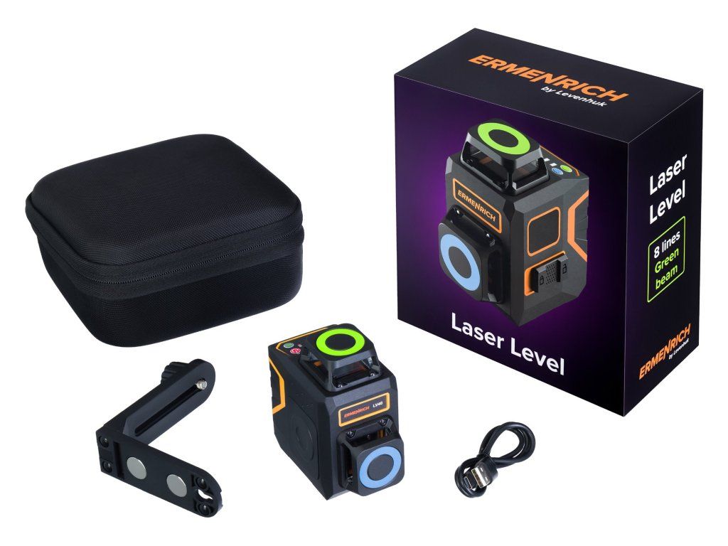 Nivelační přístroj Ermenrich LV40 PRO až 30m, zelený laser, 8 čar, 57210953