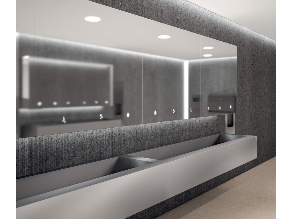 NOFER BASIC zrcadlová skříňka 90cm s automatickým dávkovačem mýdla a senzorovým osoušečem rukou MUM000121