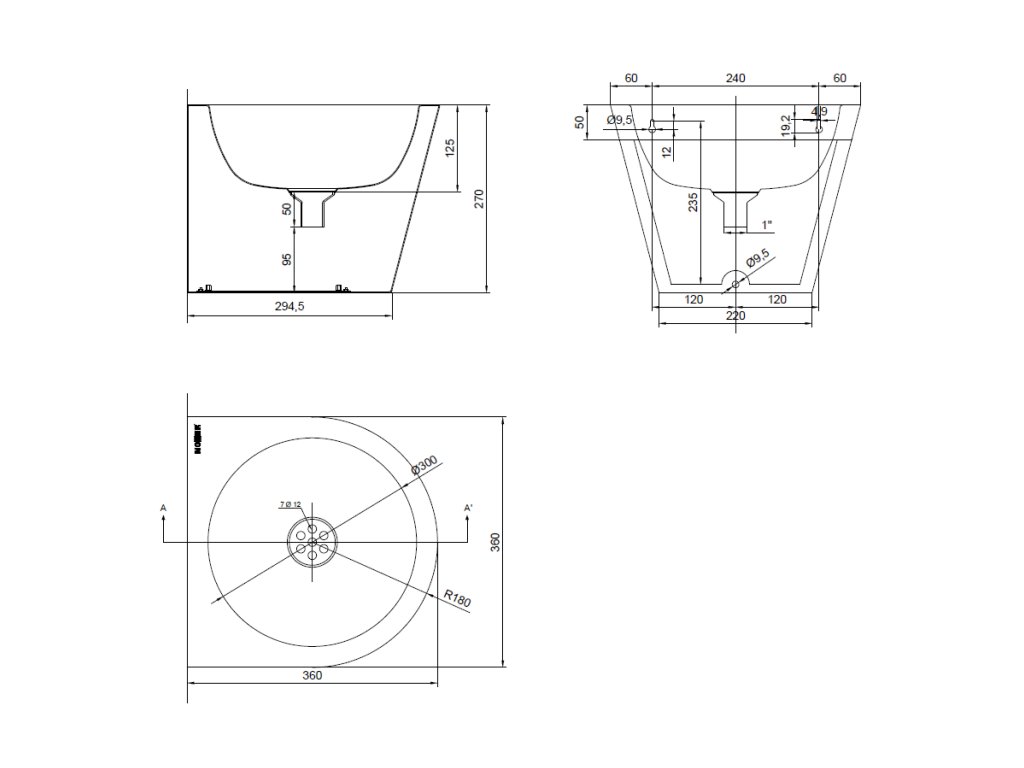 NOFER Závěsné umyvadlo bez otvoru pro baterii 360x270x360 mm, nerez mat 13036.C.S