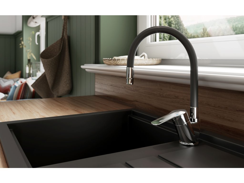 Novaservis Dřezová baterie s černým flexi ramenem Metalia 54, chrom 54014F,0C