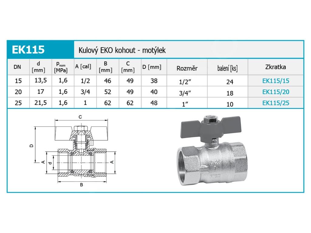 NOVASERVIS EKO kulový kohout - MM 3/4", EK115/20