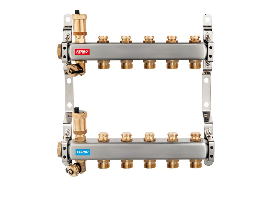 ČESKÝ VÝROBEKNerezové rozdělovače pro 2-12 vytápěných okruhů se zárukou 15 let. Kompletní sortiment příslušenství včetně náhradních dílů