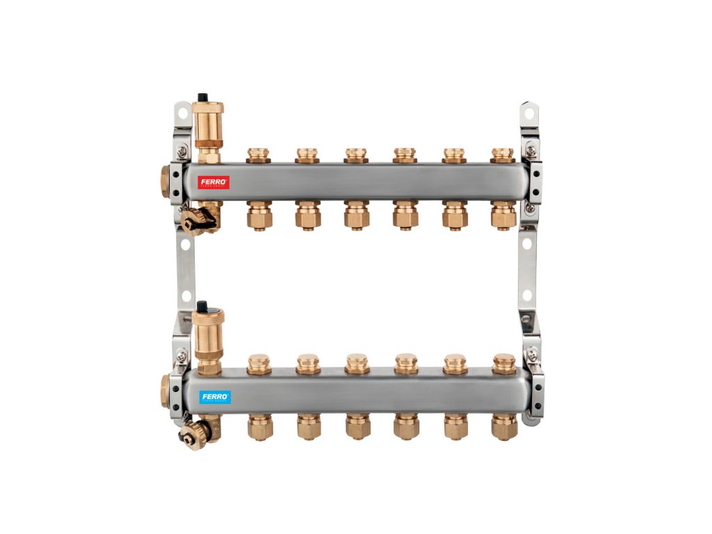 ČESKÝ VÝROBEKNerezové rozdělovače pro 2-12 vytápěných okruhů se zárukou 15 let. Kompletní sortiment příslušenství včetně náhradních dílů