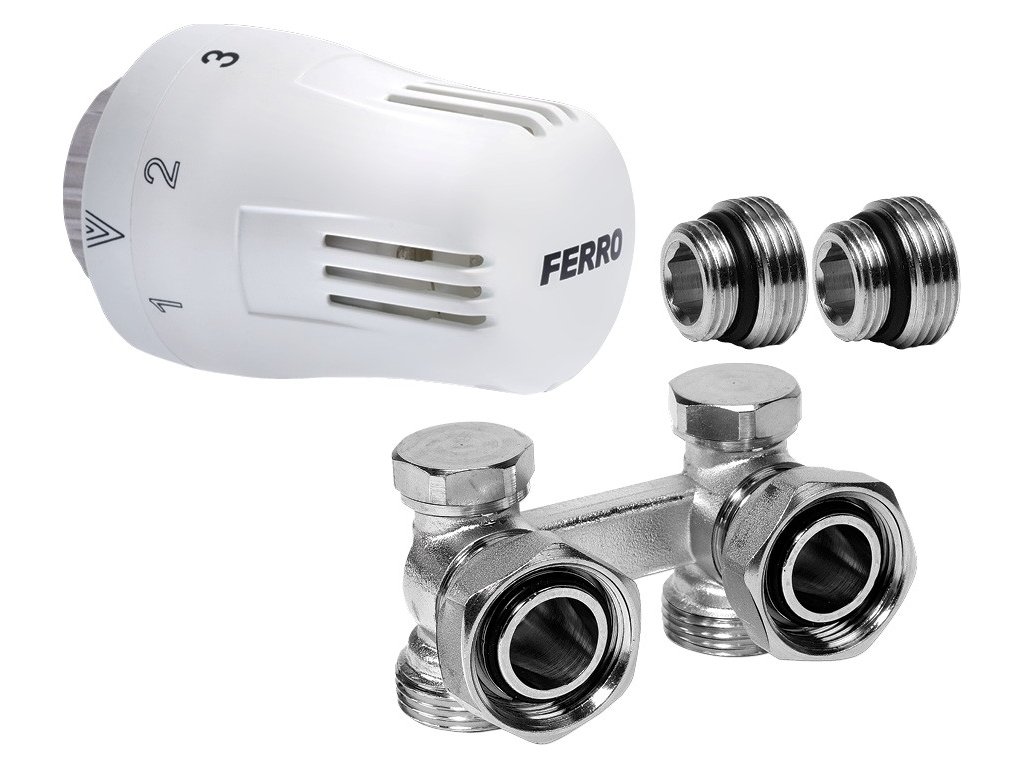 Sada na radiátory s termostatem spodní rohová 1/2"