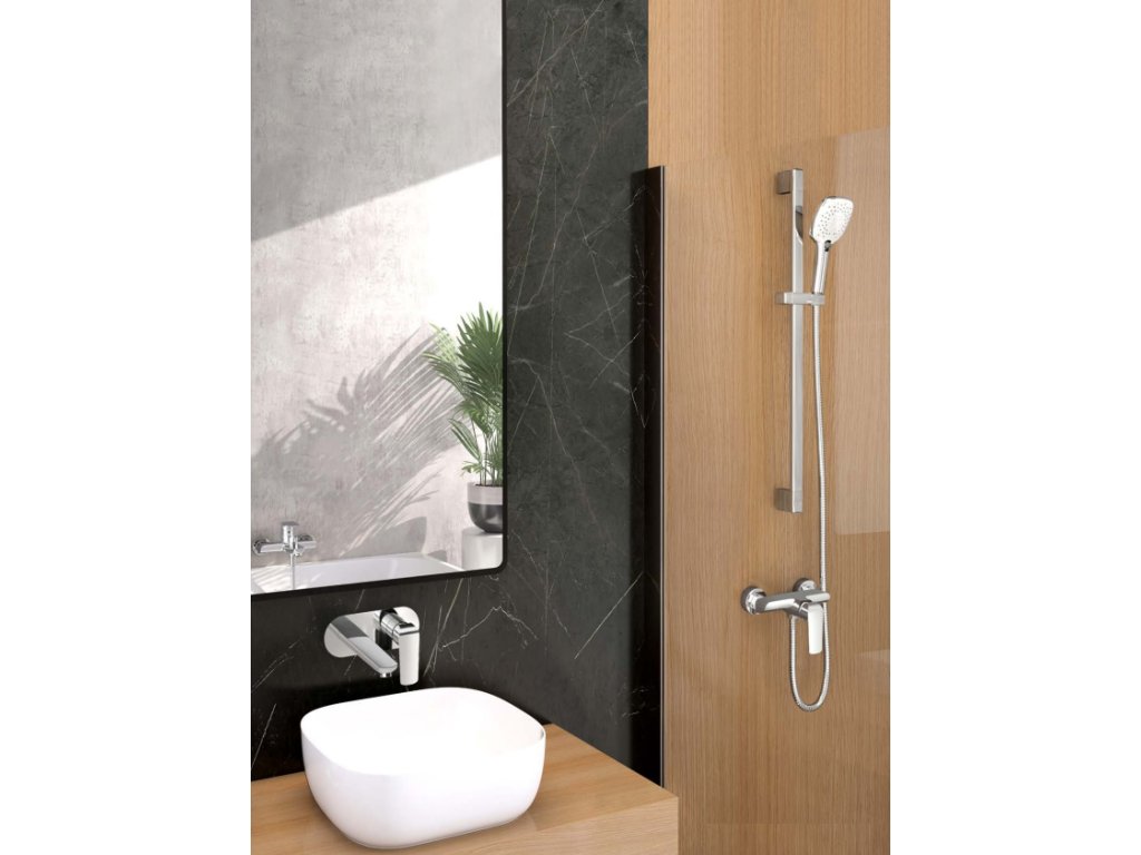 Kvalitní sprchová souprava s designovou sprchovou tyčí a velkým rozsahem nastavení výšky ruční sprchyDoplňkové parametry