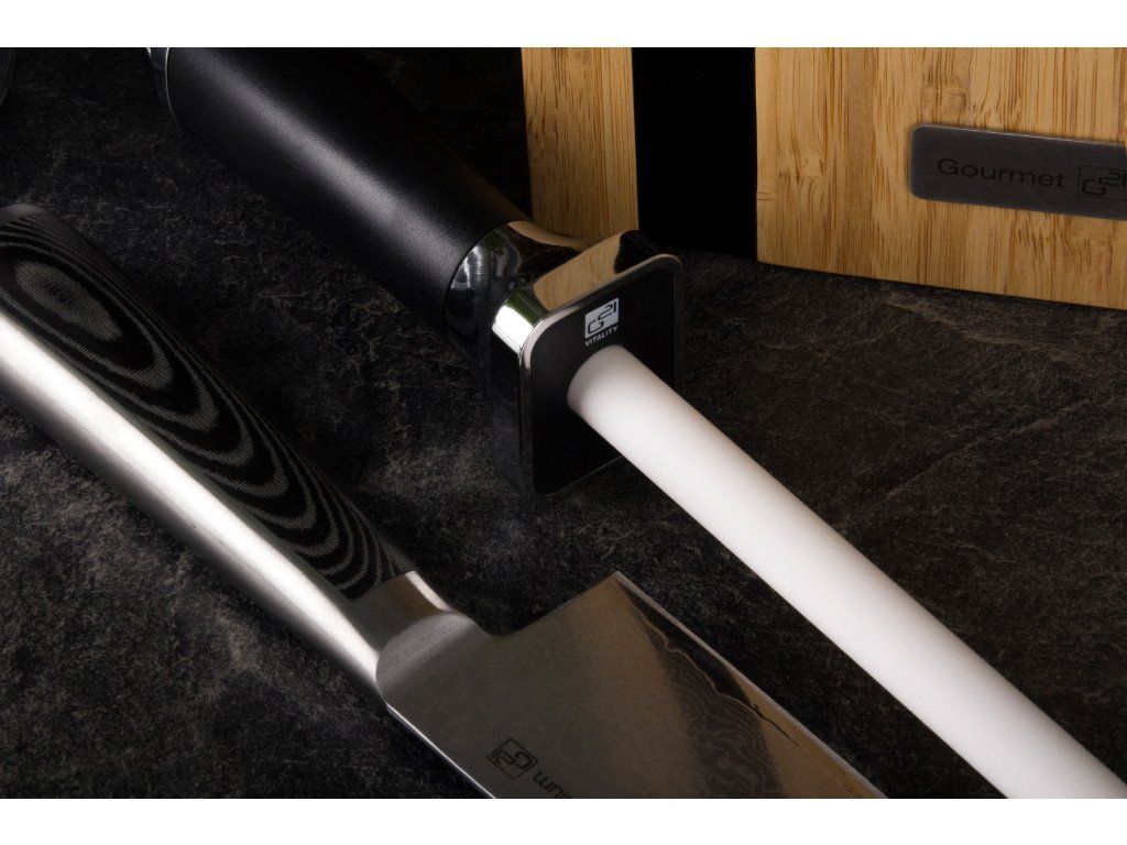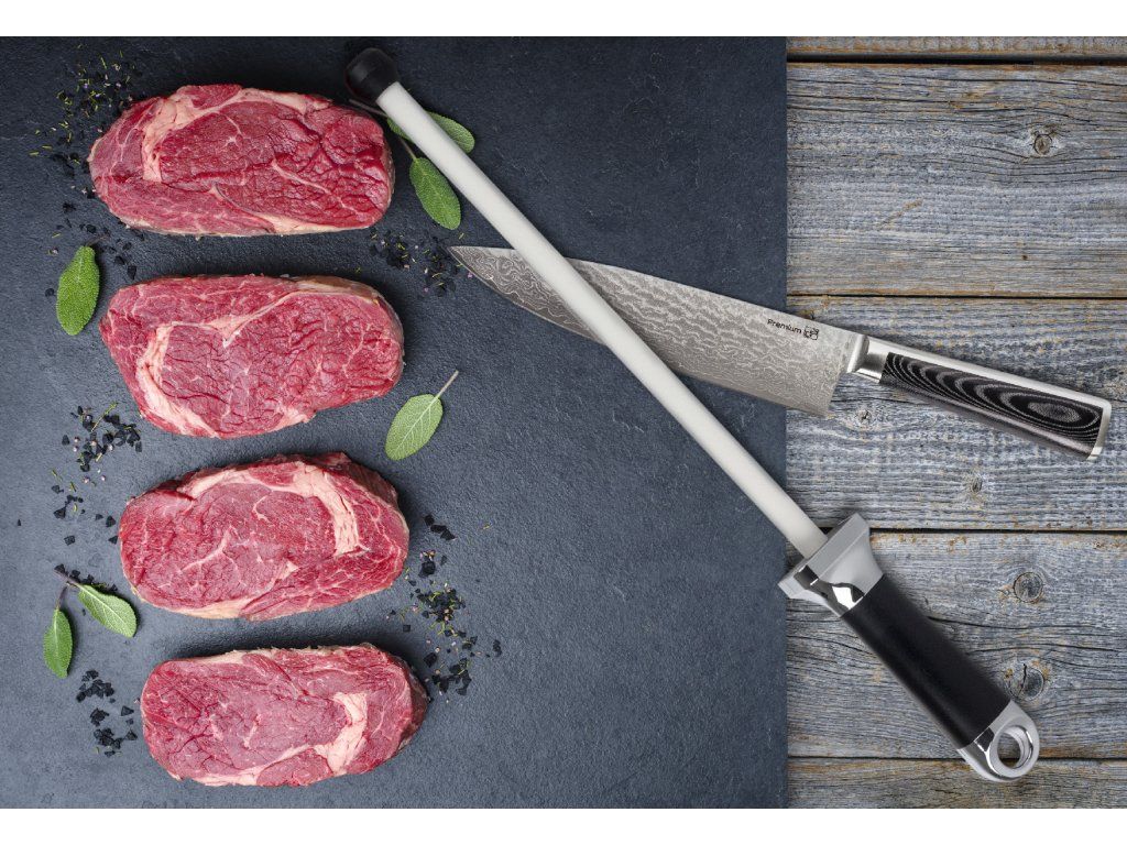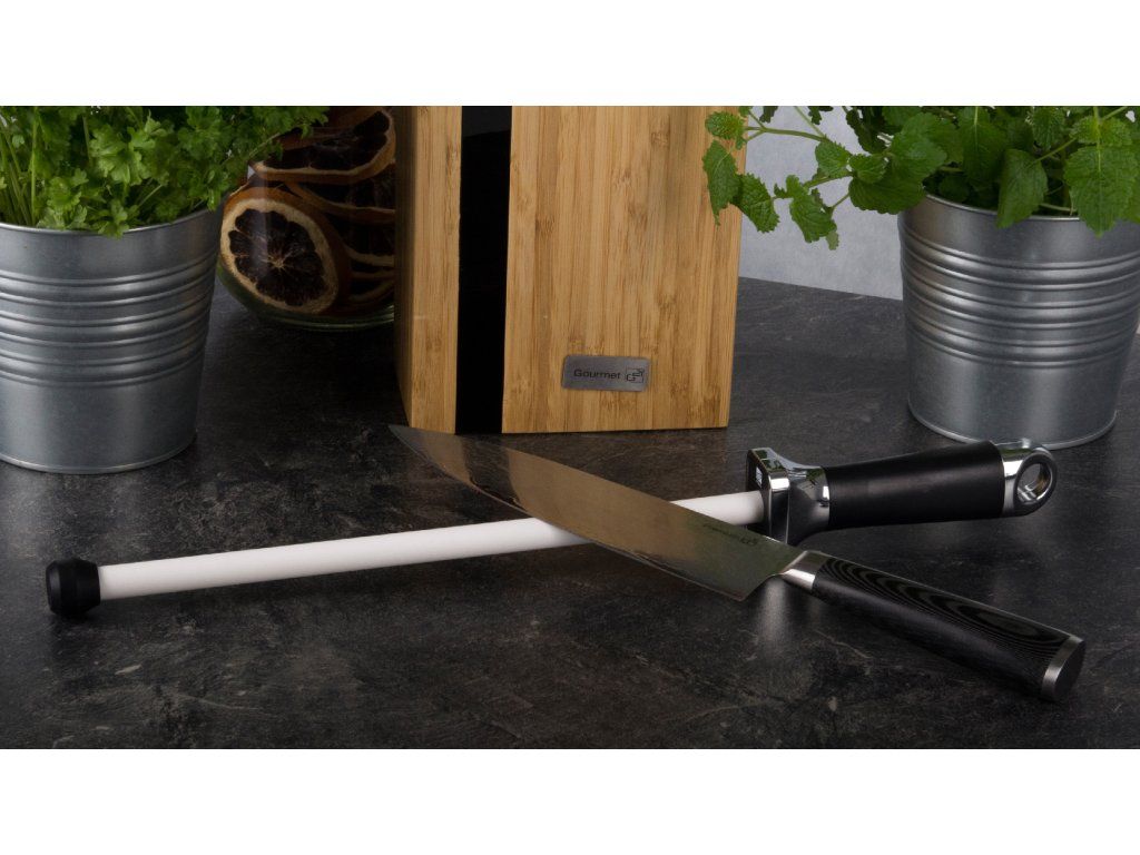 Pro jemné obtažení ostří, k finálnímu dočištění nože po broušení brusným kamenem nebo k dobroušení nožů použijte tuto špičkovou ocílku z velmi tvrdé keramiky (85 HRC).