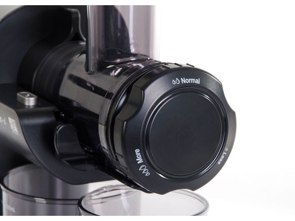 Na konci lisovací části plnicí trubice odšťavňovače je krytka s chytře umístěnými filtry nastavení hustoty šťávy. Chcete čistou ovocnou nebo zeleninovou šťávu nebo máte chuť na hustý džus s dužninou? Pootočením po směru hodinových ručiček uvolněte krytku, vytáhněte ji z trubice a zvolte si jeden ze tří režimů odšťavňování. Poté krytku zasuňte zpět, uzamkněte otočením proti směru hodinových ručiček a připravte sklenici. Na zdraví!