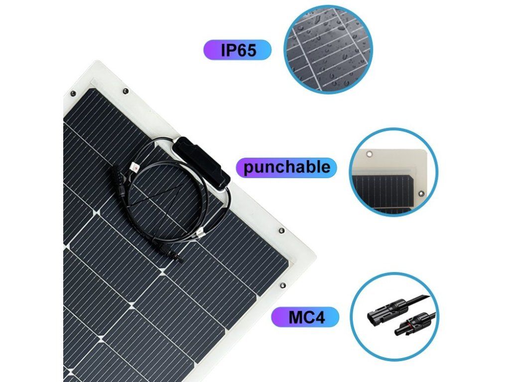 Solární panel SOLARFAM 150W nabízí flexibilní konstrukci a výkon 150 W pro spolehlivou výrobu energie na cestách i mimo síť. Díky tloušťce pouhé 2 mm a nízké hmotnosti se snadno přizpůsobí různým povrchům.