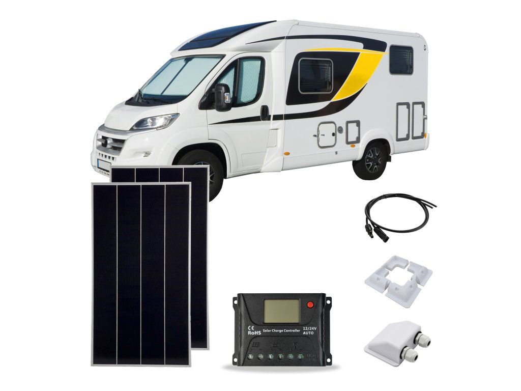 Po koupi setu získáte všechny potřebné díly pro instalaci panelu na střechu vozidla. V balení totiž najdete 2 monokrystalické solární panely s maximálním výkonem 180 W, solární regulátor, kabely, 2 držáky, lepidlo, průchodku a dutinky. Nemusíte shánět toto příslušenství a dodatečně dokupovat jednotlivé součástky. Součástí tohoto setu není baterie.