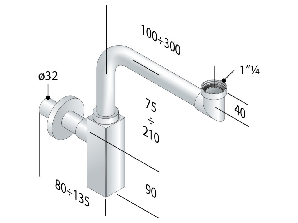 Omp Tea QUASAR umyvadlový sifon šetřící místo, 5/4" odpad 32mm, chrom 811.215.5.K