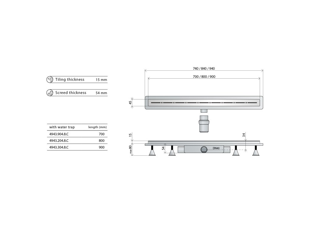 | Délka sprchového kanálku od: | 940 mm |