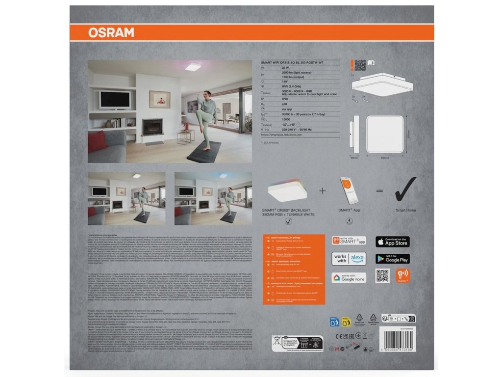 ORBIS BACKLIGHT stropní svítidlo, 350x350mm, WIFI RGB+stmívatelné, OSRAM, 2800lm, 28W, IP20, bílá AC314090255