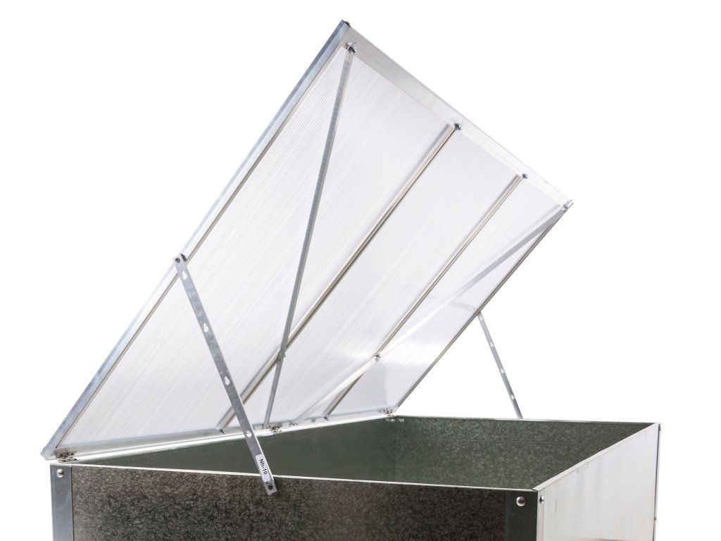Horní aluminiový rám s výplní z kvalitního 4mm polykarbonátu vám při sadbě a péči o zasazené rostliny umožní pohodlný přístup díky variabilnímu nastavení v požadované poloze.