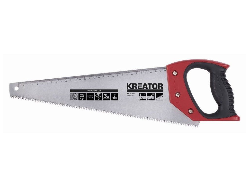 Potřebujete rychle uříznout menší kus dřeva a nechcete vytahovat elektrickou pilu? Pořiďte si ruční pilu ocasku Kreator KRT801001. Její kalené zuby jsou ostřeny ve 3 úhlech a rozkládají se po 40 cm řezné ploše. Práce s pilou půjde od ruky.