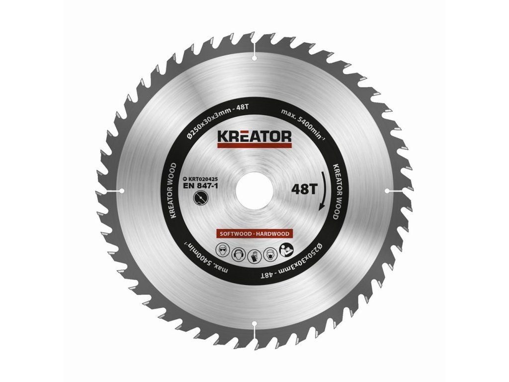 Pilový kotouč Kreator KRT020425 na dřevo 250mm, 48T, 63605090