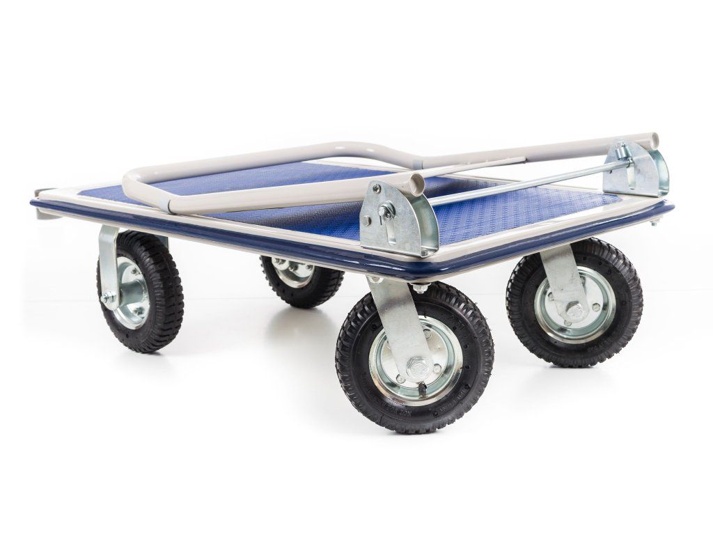 Plošinový vozík G21 300 kg je skladový vozík se sklopným ergonomickým madlem a nosností až 300 kg. Díky rovné nosné ploše bez postranic přesune i rozměrnější náklad. Využijete jej ve skladech, hotelích, obchodech, dílnách a dalších provozech.