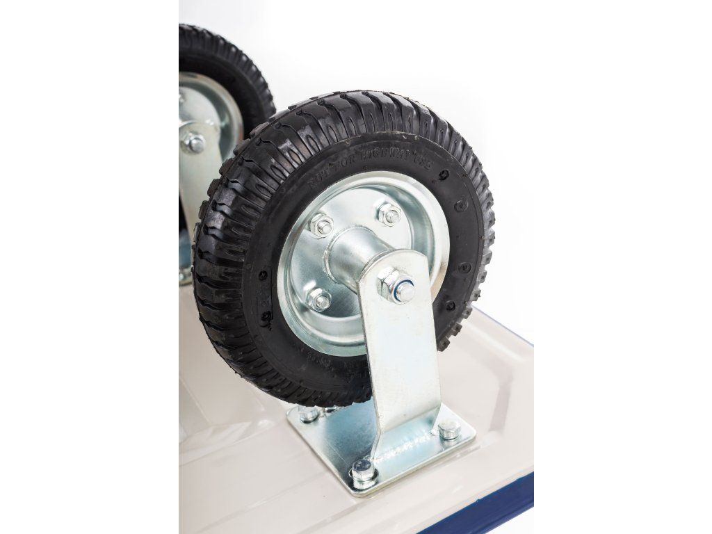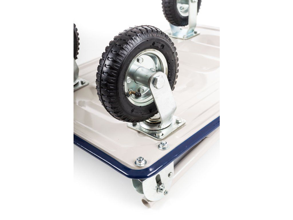 Manipulační plošinový vozík G21 má 4 pevná kola z odolné tvrzené gumy, která nezanechává černé stopy a nenaruší čistý povrch podlahy ve skladě, na prodejně ani v domácnosti. Je proto vítaným pomocníkem i při stěhování.