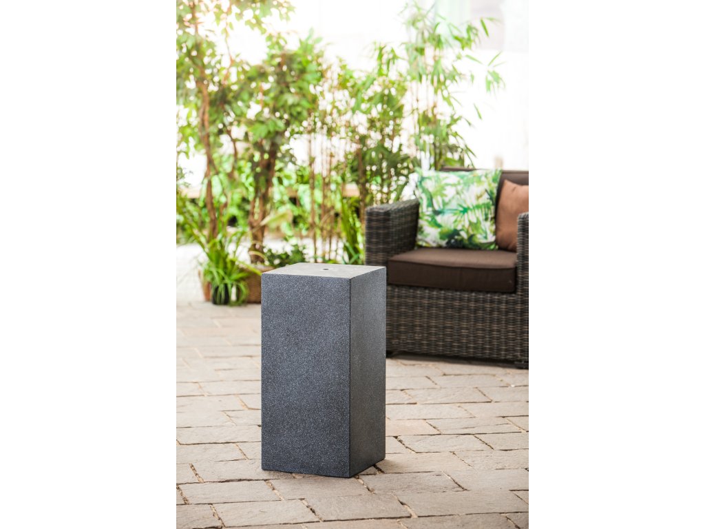 Podstava fontány Heissner TOWER, antrazit Oblíbený doplněk k fontánám Heissner. Podstavec má v sobě průchodku na protáhnutí kabelu od fontány.Parametry:Materiál PolystoneBarva antracitRozměr v cm (DxŠxV) 34 x 34 x 71Středová průchodka na kabel anoDoplňkové parametry