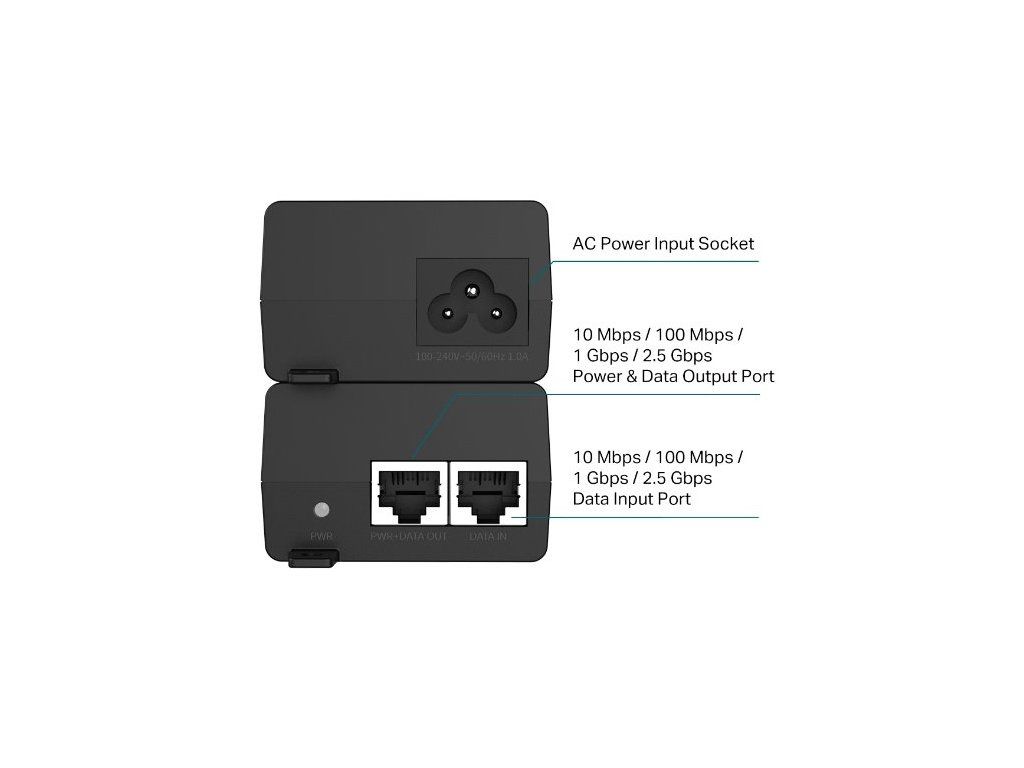 - 1 10 Mbps /100 Mbps /1Gbps / 2.5Gbps RJ45 power+data-out port