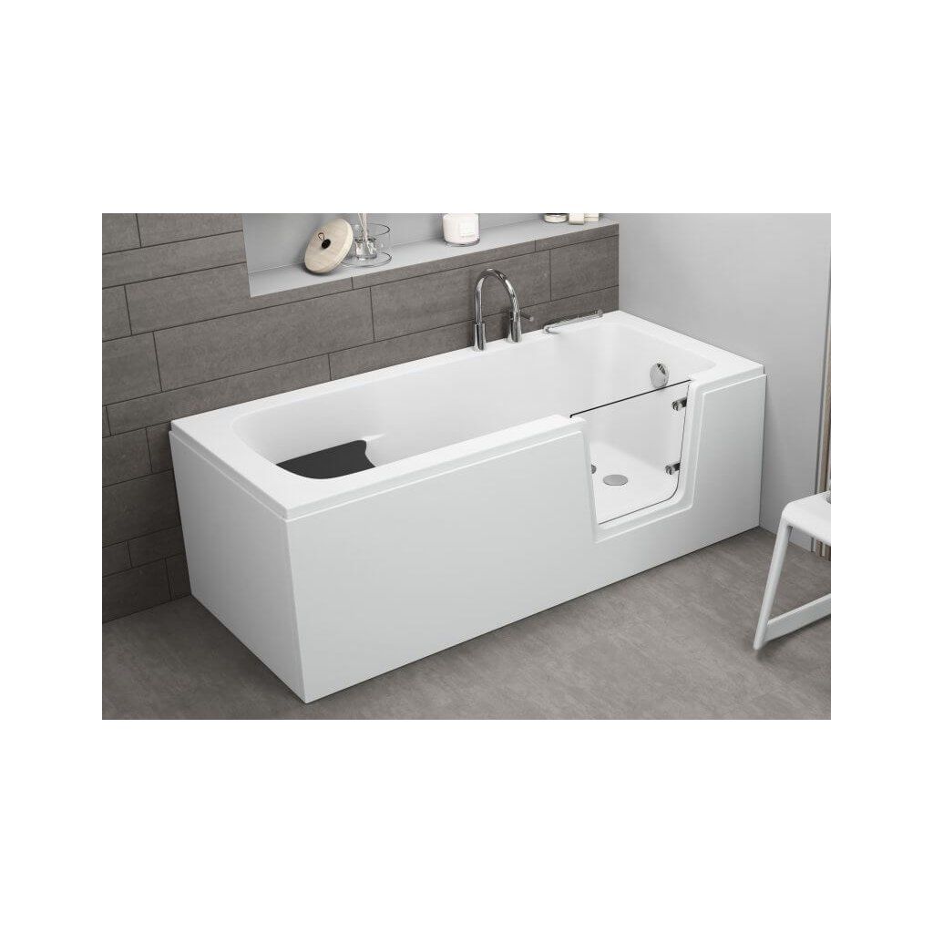Akrylátová vana Avo s dvířky od společnosti Polimat, naprosto splňuje požadavky zákazníka s omezenou zdravotní způsobilostí a starších lidí samostatně podstoupit koupel. Díky spolehlivému celokovovému mechanizmu zavírání a těsnění dvířek na západku voda za žádných okolností nevyteče a dvířka nebudou praskat pod tlakem, protože sklo použité ve dveřích je temperované a velmi odolné.