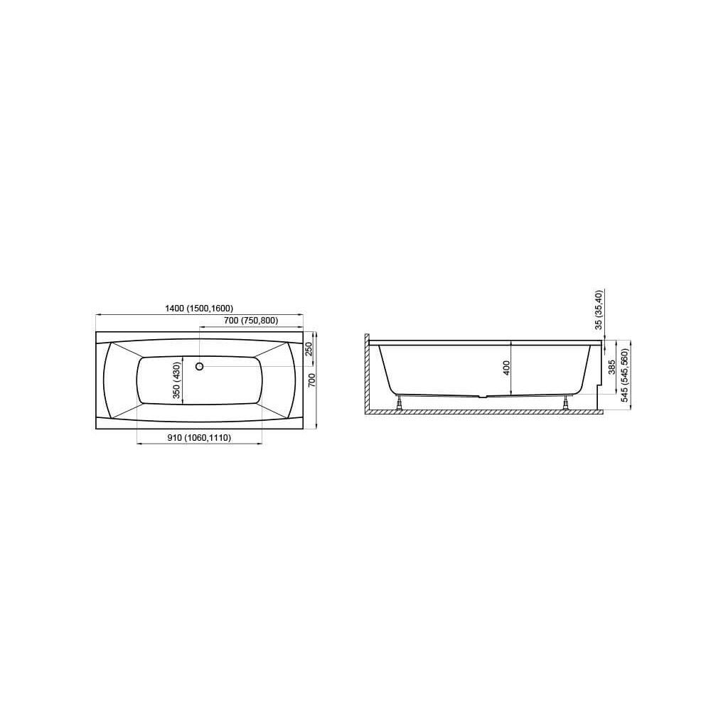 Polimat Capri New akrylátová vana Délka vany: 160cm, CPI-N_160_CM