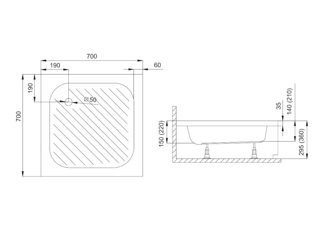 - rozměry vaničky - 70 x 70 cm, hloubka - 22 cm