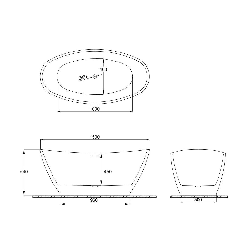 Specifikace volně stojící akrylátové vany Mango