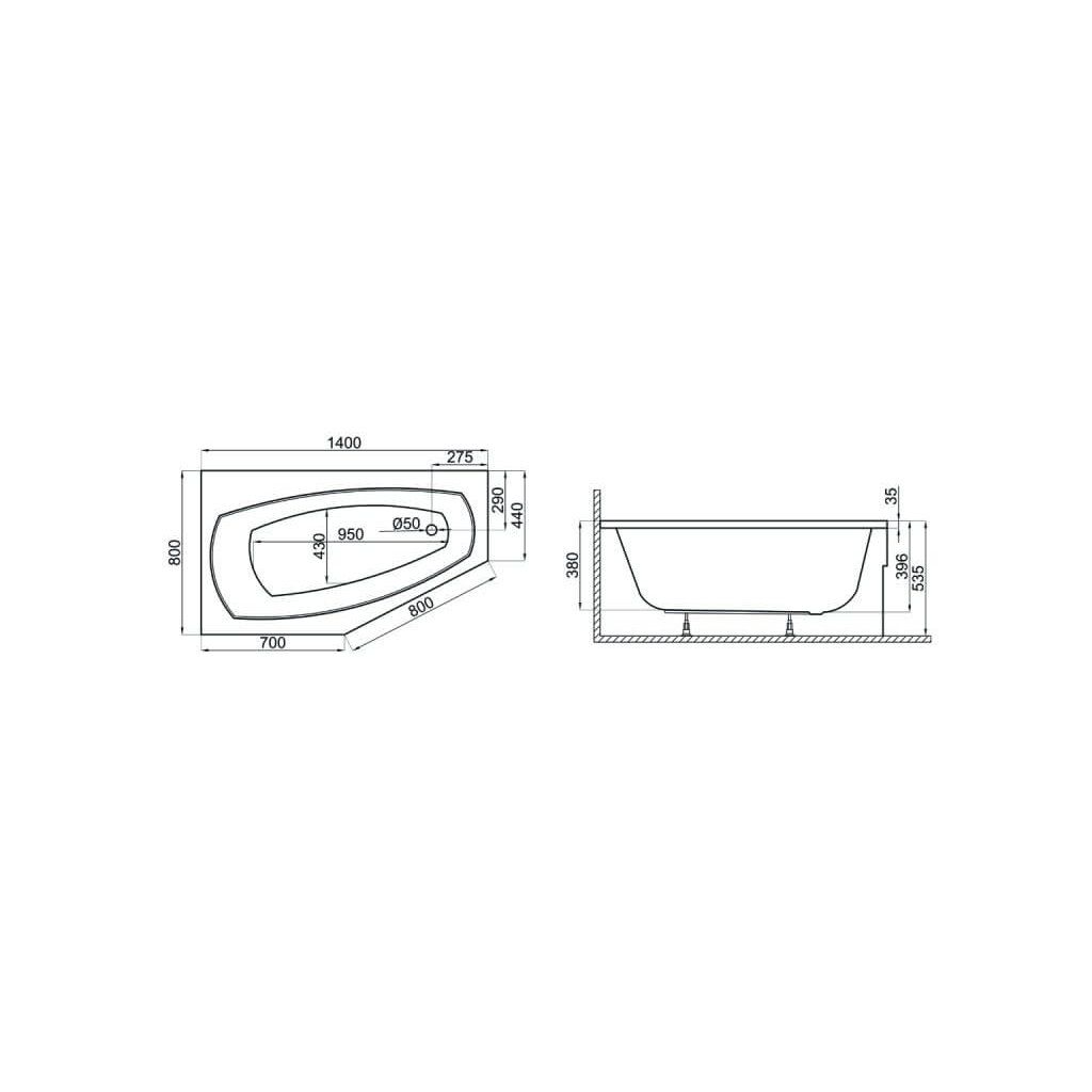 Polimat Marika 140x80 akrylátová vana Délka vany: 140cm, Orientace: Pravá, MKA14080_PRAVA_140_CM