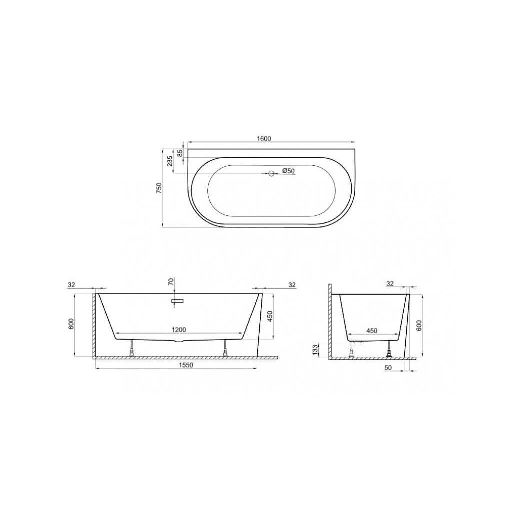 Polimat Sola I volně stojící akrylátová vana, černý mat Délka vany: 160cm, 00381