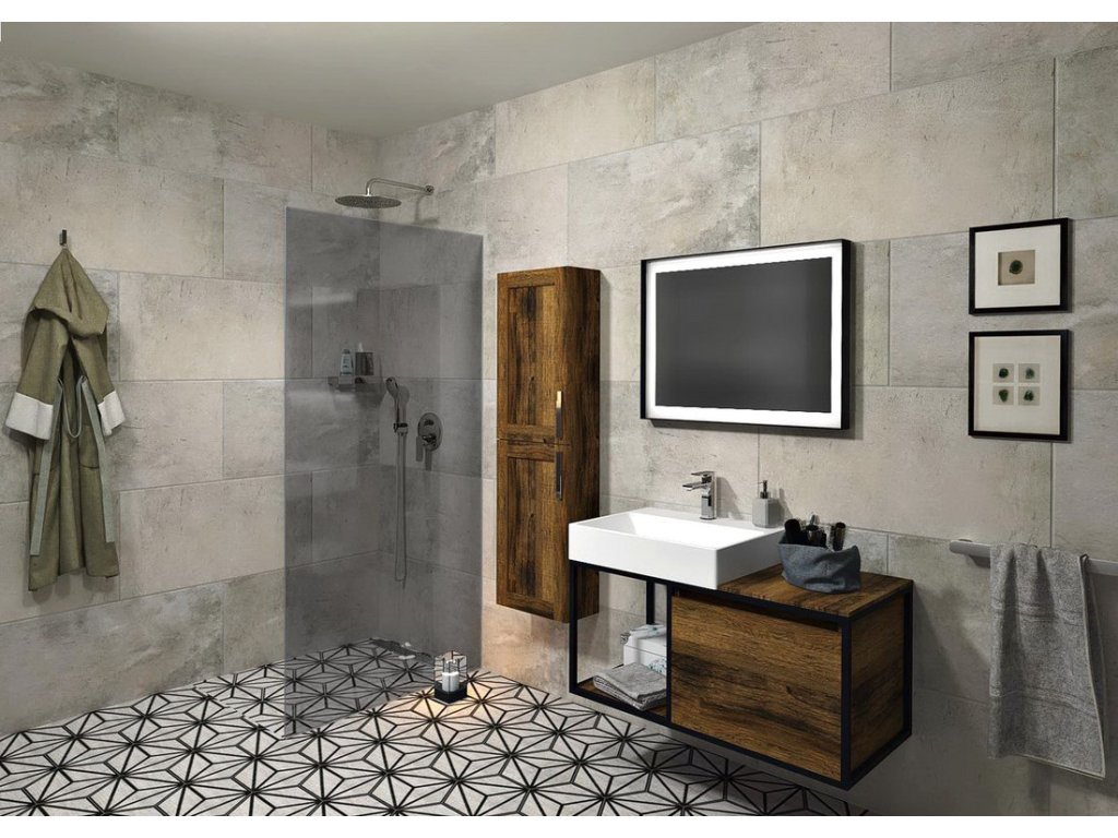 - čiré sklo s otvory pro uchycení police s držákem osušky v šířkách 900 až 1200 mm
