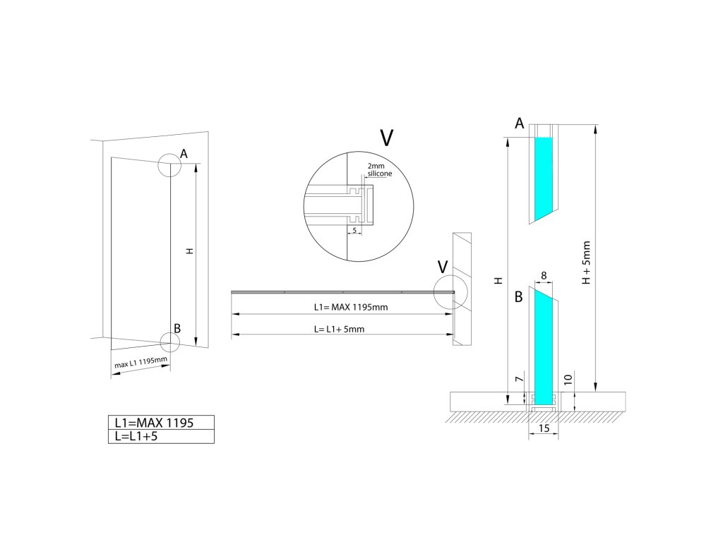 Sada profilů pro uchycení skla rozměrů: