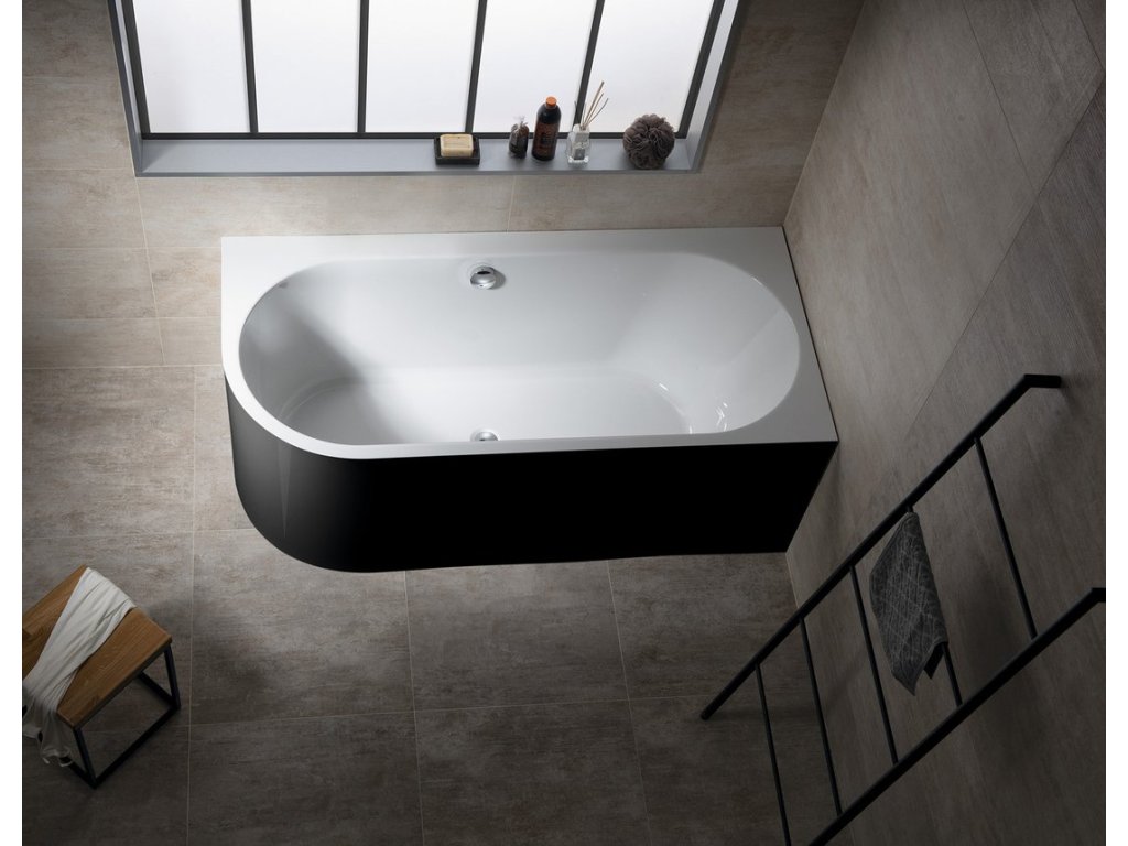 Polysan ASTRA R MONOLITH asymetrická vana 160x75x60cm, bílá/černá 34611MB