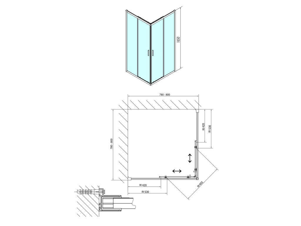 • Bezpečnostní sklo pevného dílu tloušťky 5 mm a posuvného dílu tloušťky 6 mm