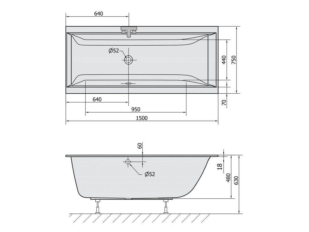 Polysan CLEO SLIM obdélníková vana 150x75x48cm, bílá 27611S