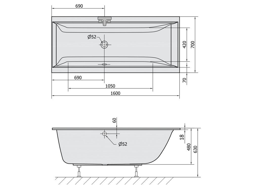 Vana má oproti standardním vanám výšku hrany okraje pouze 18 mm. Tato vana je určena pouze k obezdění, které díky nízké hraně působí estetičtěji, nebo zapuštění do pódia. Nelze ji instalovat s obkladovým panelem.