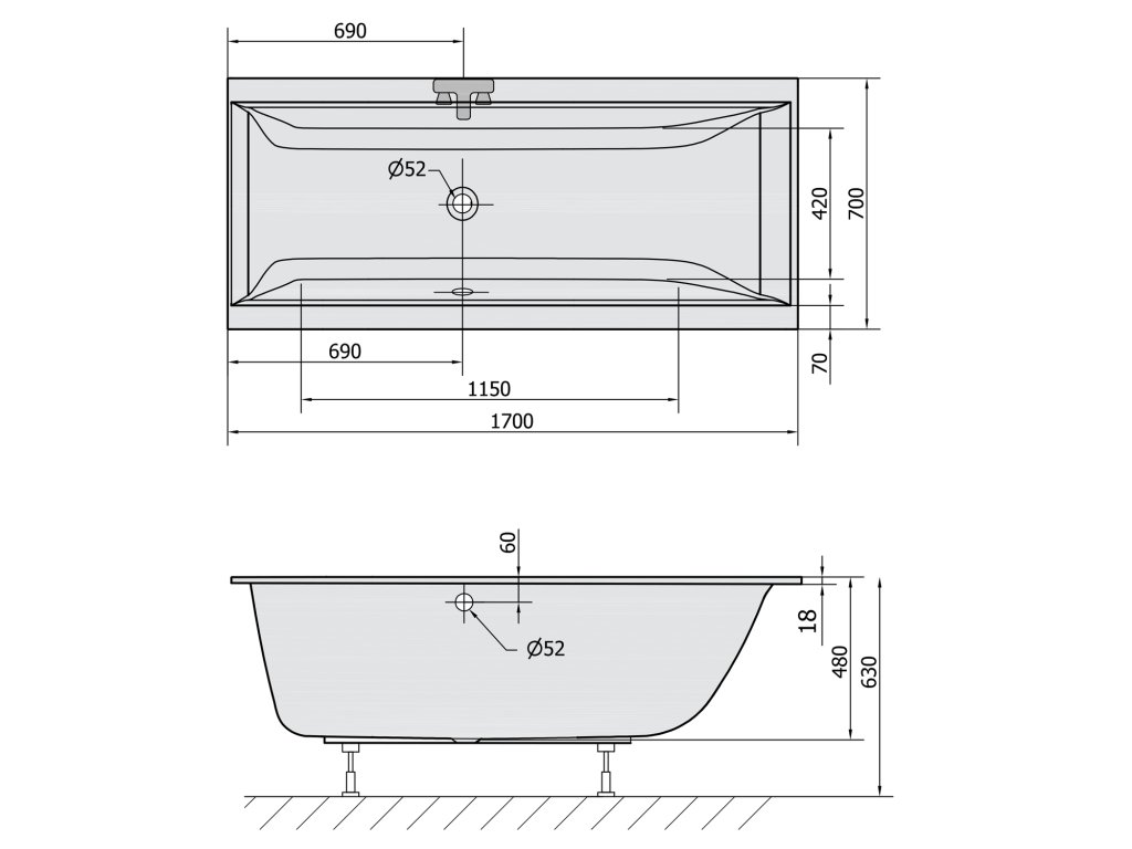 Polysan CLEO SLIM obdélníková vana 170x70x48cm, bílá 74611S
