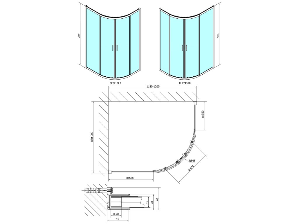- Instalační rozměr dveří do niky lze díky rozšiřovacímu profilu EL825 zvětšit o 25 mm na každou stranu, celkem o 50 mm