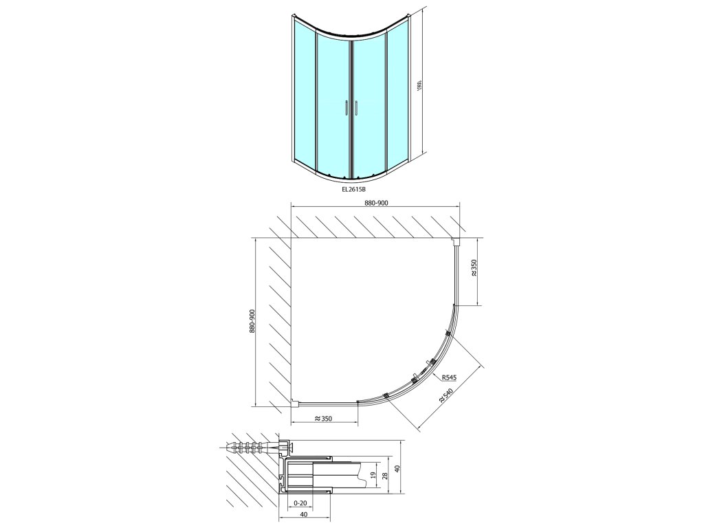 | Tvar: | Čtvrtkruhové zástěny |