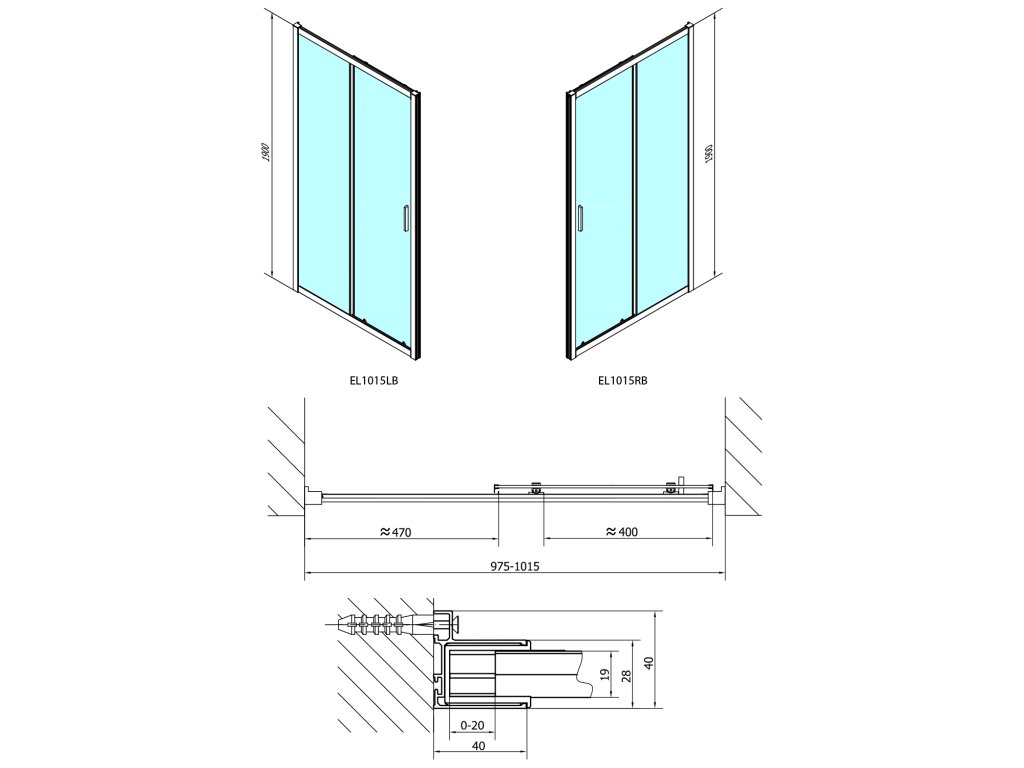 • Instalační rozměr dveří do niky lze díky rozšiřovacímu profilu EL825 zvětšit o 25 mm na každou stranu, celkem o 50 mm
